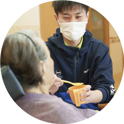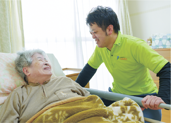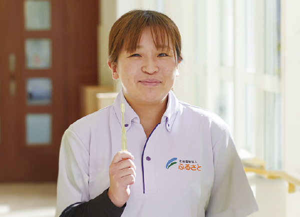 さらに、誤嚥性肺炎を防ぐために専門スタッフが週2回の口腔ケアを実施し、清潔で健康的な口の環境を維持。これらの取り組みで、介護の質を高めながら利用者様の自立を後押しする“ポジティブな介護”を目指しています。